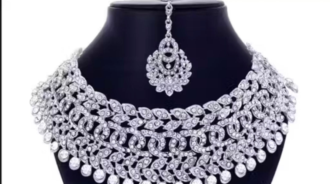Sophisticated set featuring white Austrian diamonds and a rhodium-plated finish for a timeless, elegant look. Perfect for special occasions.