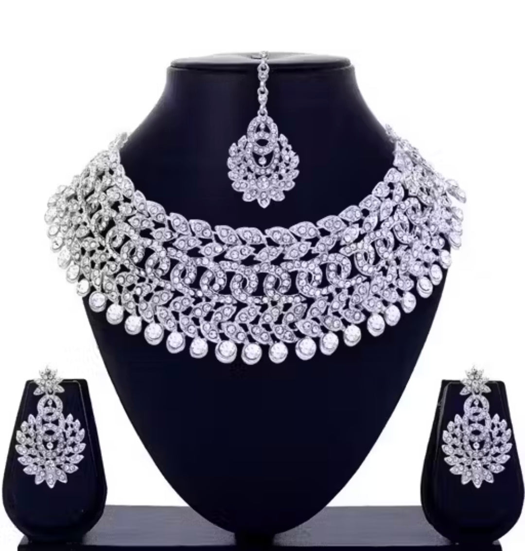 Sterling Rhodium Plated Jewellery Set With White Austrian Daimond